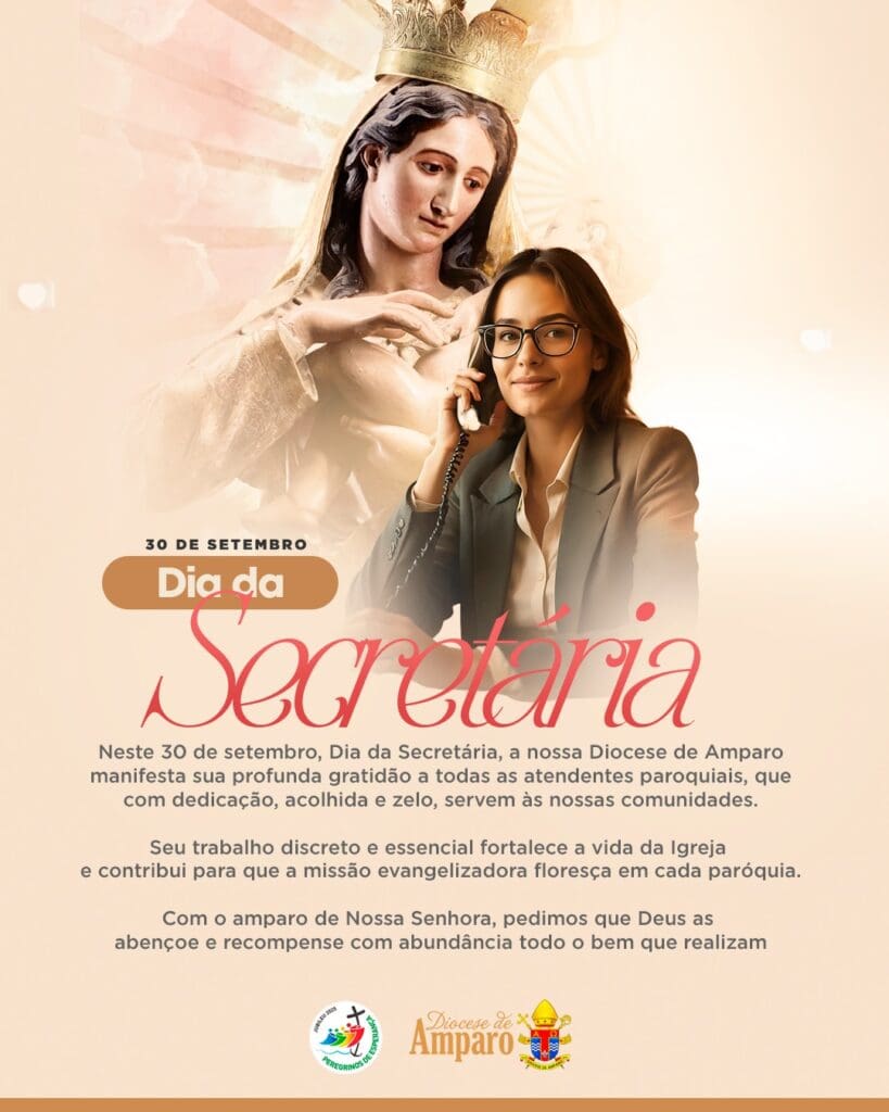 Homenagem ao Dia da Secretária Neste 30 de setembro, Dia da Secretária, a nossa Diocese de Amparo manifesta sua profunda gratidão a todas as atendentes paroquiais, que com dedicação, acolhida e zelo, servem às nossas comunidades. Seu trabalho discreto e essencial fortalece a vida da Igreja e contribui para que a missão evangelizadora floresça em […]
