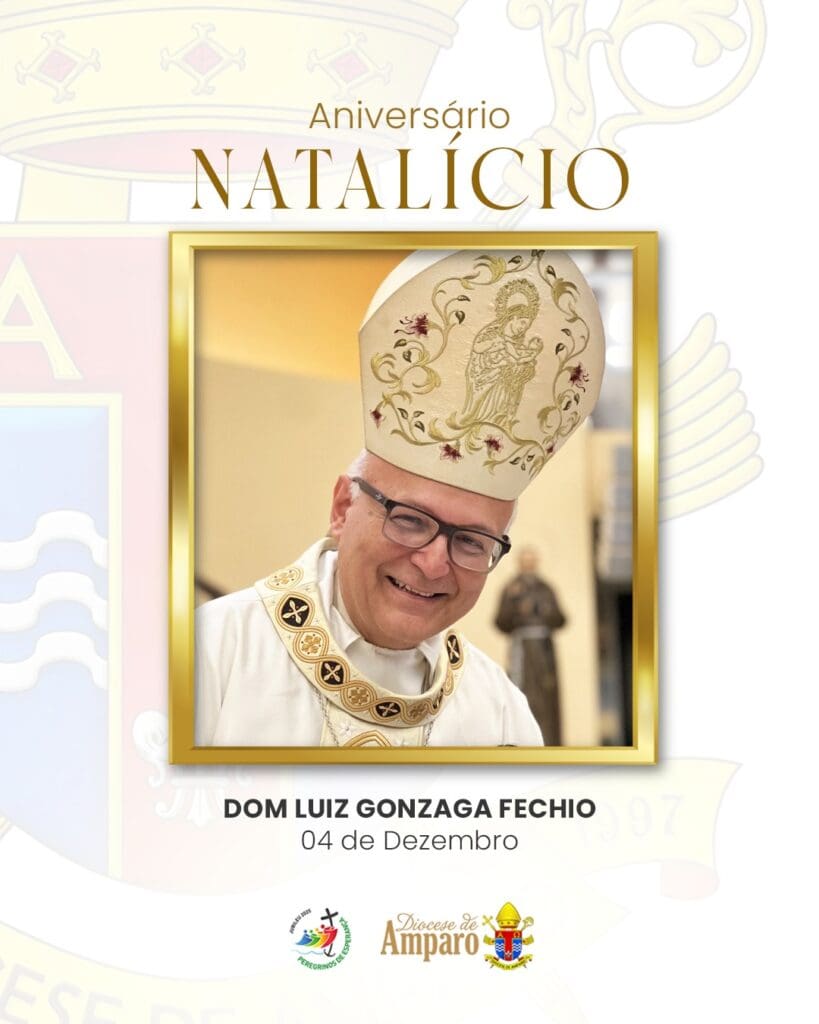 Aniversário de Dom Luiz Gonzaga Fechio Hoje rendemos graças a Deus pela vida e vocação de Dom Luiz Gonzaga Fechio. Que o Senhor continue iluminando seu ministério episcopal, fortalecendo-o na missão de servir com alegria, sabedoria e generosidade ao povo desta Igreja particular de Amparo. Com gratidão, celebramos seu aniversário natalício, pedindo que Maria Santíssima […]