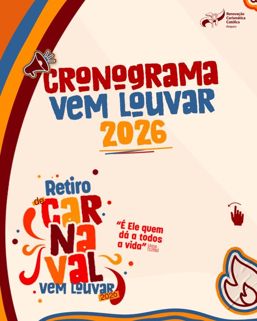 Vem Louvar 2026 divulga cronograma oficial O retiro de Carnaval Vem Louvar 2026 será realizado de sábado, 14 de fevereiro, a terça-feira, 17 de fevereiro, reunindo fiéis em dias intensos de oração, formação e convivência fraterna. Neste ano, o encontro tem como tema “É Ele quem dá a todos a vida” (At 17,25b), inspirado na […]