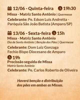 A Paróquia convida todos os fiéis de Itapira e região a vivenciarem este dia especial de fé, devoção e alegria, celebrando a vida e o exemplo de Santo Antônio, patrono da comunidade.