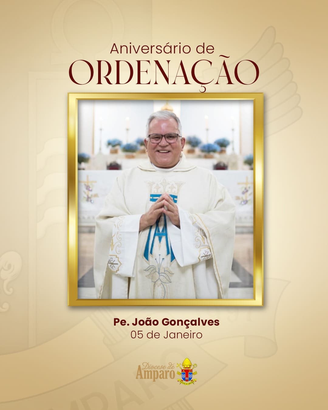 A Diocese de Amparo manifesta sua gratidão e convida todo o povo de Deus a rezar por seus ministros ordenados, para que, sustentados pela intercessão de Maria, Mãe da Igreja, continuem servindo com amor e fidelidade.