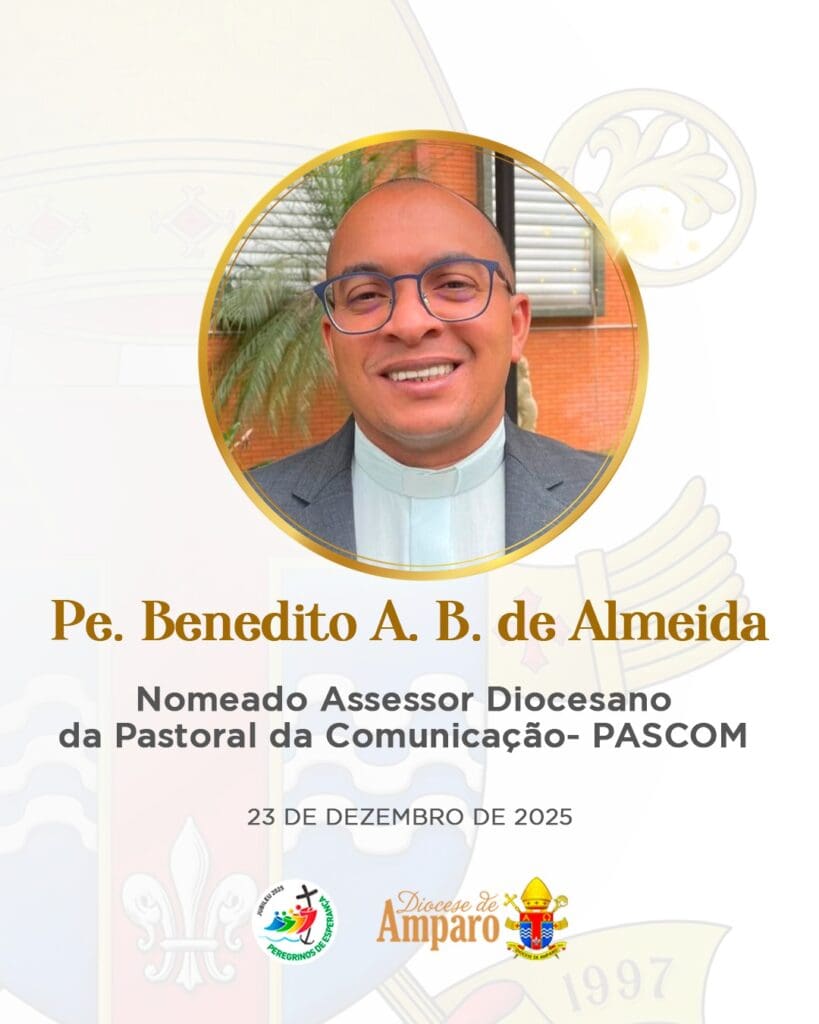 NOTA OFICIAL A Diocese de Amparo comunica que o Pe. Benedito Antônio Bueno de Almeida passa a exercer a função de Assessor Diocesano da Pastoral da Comunicação (PASCOM). O exercício desta função reforça o compromisso da Diocese com uma comunicação cada vez mais evangelizadora, integradora e a serviço da comunhão eclesial, colaborando com as pastorais, […]