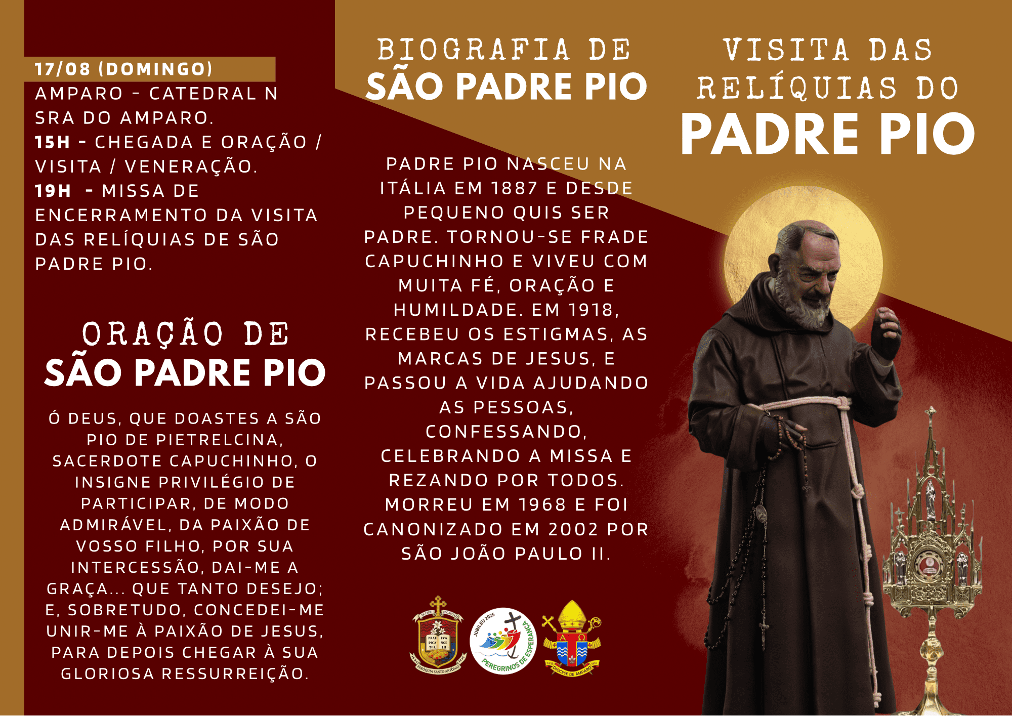 13 de agosto de 2025 VISITA DAS RELÍQUIAS DE SÃO PADRE PIO VISITA DAS RELÍQUIAS DE SÃO PADRE PIO Radicado no estado de São Paulo há 7 anos, Rogério Melo, natural de Fortaleza/CE, é missionário e