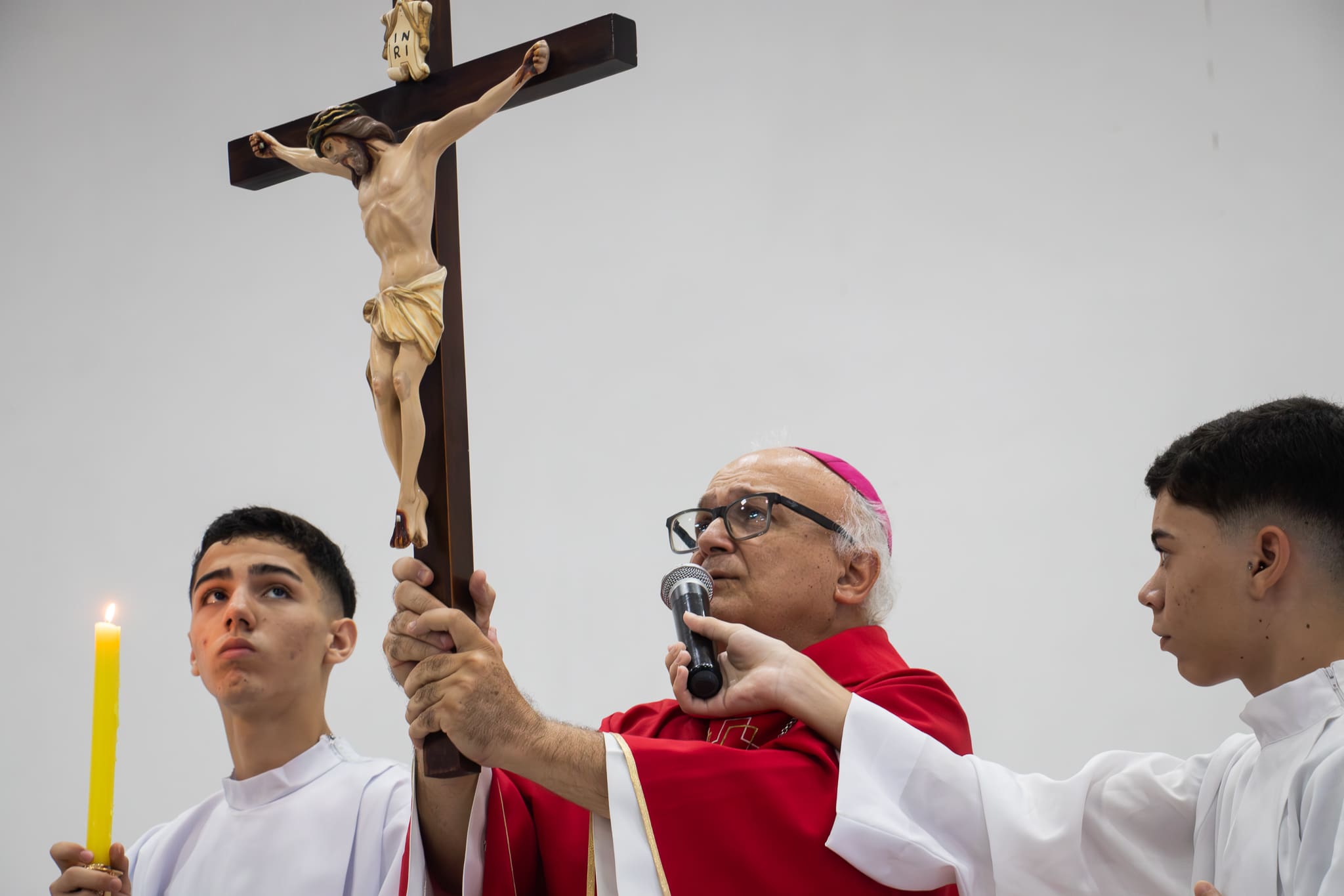 Outro ponto central da homilia foi o significado do lado aberto de Cristo na cruz, de onde brotam sangue e água, símbolo do nascimento da Igreja e dos sacramentos. Segundo o bispo, é deste gesto de entrega total que brota a vida sacramental da Igreja, sinal da união entre a divindade de Deus e a humanidade.