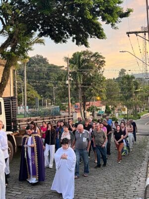 Dando continuidade à programação quaresmal, na sexta-feira, dia 20, foi realizada a procissão seguida de Missa Penitencial, momento de profunda espiritualidade e recolhimento. A celebração reforçou o chamado à conversão e à vivência das práticas próprias deste tempo litúrgico, como a oração, o jejum e a caridade.