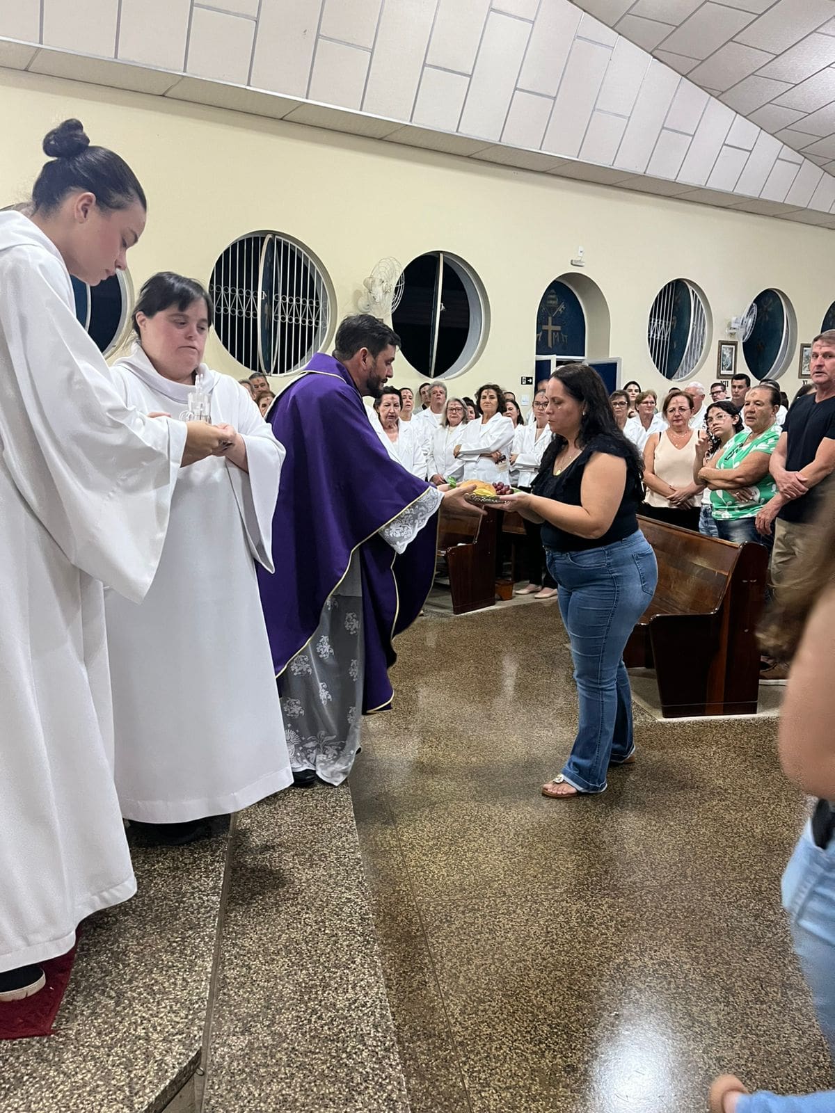 A celebração foi presidida pelo pároco, padre Alexandre Donizeti Francisco, e contou com a presença do diácono permanente Ademir Marcelo Ferrarin, além do seminarista Vinícius Reversi, que colaboraram na liturgia juntamente com os agentes de pastorais e demais membros da comunidade.