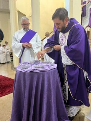 A Paróquia Nossa Senhora Aparecida de Arcadas realizou, no dia 18 de fevereiro, a celebração da Quarta-feira de Cinzas, reunindo a comunidade paroquial para o início do Tempo da Quaresma. A Santa Missa contou com expressiva participação dos fiéis, que se uniram em oração e no rito da imposição das cinzas, sinal de conversão e renovação espiritual.