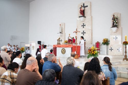 A programação teve início com a Santa Missa, presidida pelo pároco local, Padre Leandro Lucena Torres, reunindo a comunidade para celebrar a Solenidade de Pentecostes, marco do envio do Espírito Santo sobre a Igreja.