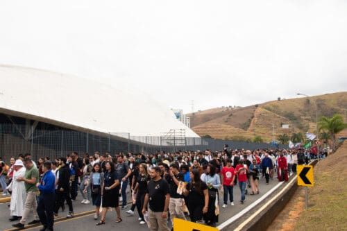 Desde cedo, o Centro de Eventos Padre Vítor Coelho de Almeida recebeu caravanas de todas as regiões do Brasil. O dia contou com oração, reflexão sobre o Jubileu, leitura orante e momentos marcantes como a peregrinação nacional ao Santuário e a Santa Missa. À tarde, a animação tomou conta dos jovens com adoração eucarística e o show de Diego Fernandes, encerrando a jornada em clima de celebração.