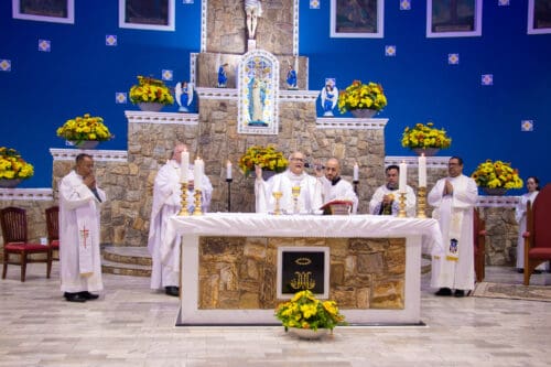 Na noite da última sexta-feira, 26 de setembro de 2025, às 19h30, a cidade de Jaguariúna viveu um momento histórico com a solene celebração da dedicação da Igreja Matriz de Santa Maria, padroeira do município. A missa foi presidida pelo Bispo diocesano, Dom Luiz Gonzaga Fechio, e concelebrada pelo pároco local, Padre Ademir Bernadelli, pelo Vigário paroquial, Padre Juliano Amaral, além dos sacerdotes de Jaguariúna: Padre Leandro Lucena Torres, da Paróquia Sagrado Coração de Jesus, e Padre Francisco Silvestre, da Paróquia Santa Dulce dos Pobres. Centenas de fiéis participaram deste momento marcante e profundamente significativo na vida da comunidade paroquial.