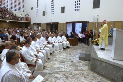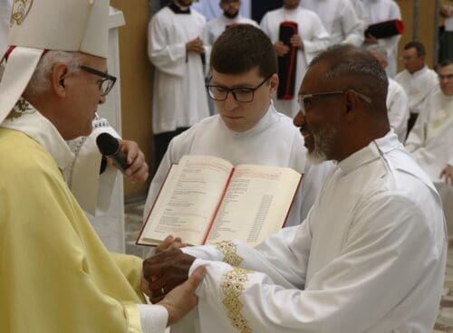 Durante a homilia, Dom Luiz destacou que cada vocação nasce antes de tudo no coração de Deus e se concretiza na disponibilidade generosa de quem responde ao Seu chamado. Enfatizou que o ministério diaconal é essencialmente um serviço, e não um título honorífico, convidando os ordenandos a permanecerem próximos dos pequenos, dos pobres, dos doentes e de todas as pessoas que necessitam de cuidado pastoral, a exemplo dos primeiros diáconos da Igreja primitiva. O bispo também recordou o caminho de formação percorrido por cada candidato, marcado pelo discernimento, pelo estudo, pela vida de oração e pela experiência concreta de serviço às comunidades, sublinhando que o compromisso agora assumido exige humildade, fidelidade e permanente conversão.
