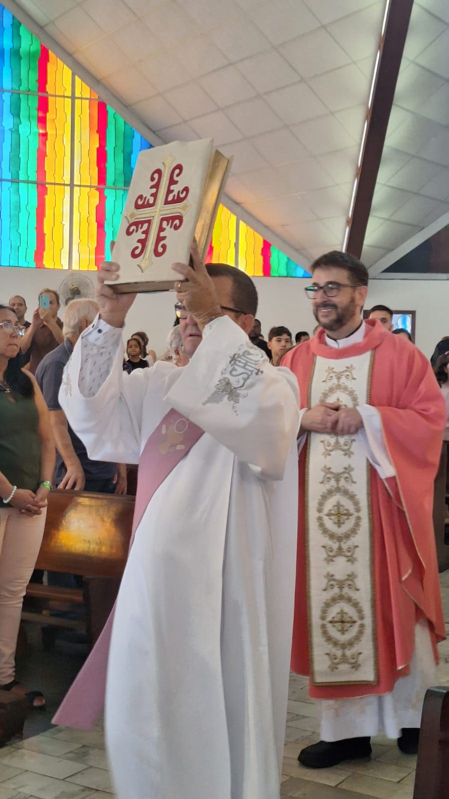 A celebração foi presidida pelo pároco local, Pe. Tarlei Navarro Pádua Souza, que também exerce a função de Coordenador Diocesano de Pastoral, e reuniu a comunidade paroquial, bem como representantes dos conselhos vindos de diversas cidades da Diocese, em um significativo momento de comunhão, fraternidade e espiritualidade.