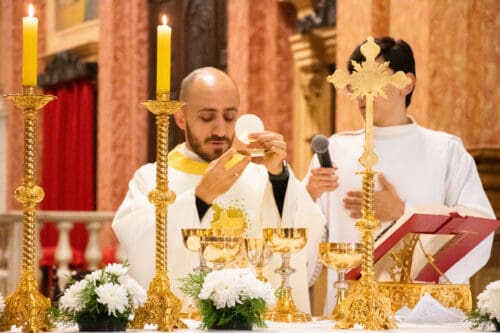 Ao longo da manhã e da tarde, os fiéis participaram de momentos de oração comunitária, com destaque para o Terço Mariano, rezado às 9h e às 15h, e a Adoração ao Santíssimo Sacramento, realizada às 18h30, conduzida pelo Pe. Alexandre Donizeti Francisco, pároco da Paróquia Nossa Senhora Aparecida de Arcadas. A bênção com o Santíssimo foi concedida às 19h, preparando o coração dos fiéis para a celebração solene da noite.