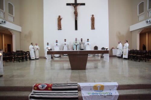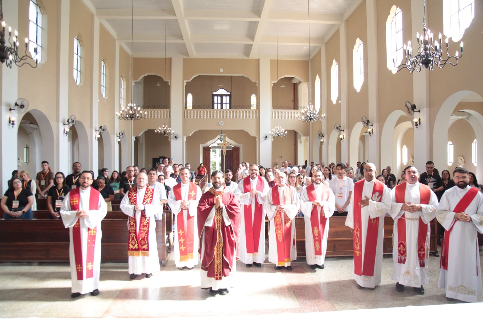 Durante o Rito de Envio, os participantes receberam uma cruz, símbolo do compromisso de comunicar o Evangelho com fidelidade e esperança. O gesto foi acompanhado por uma pequena flor, recordando que a missão comunicacional floresce quando é guiada pelo Espírito Santo e sustentada pela vida comunitária.