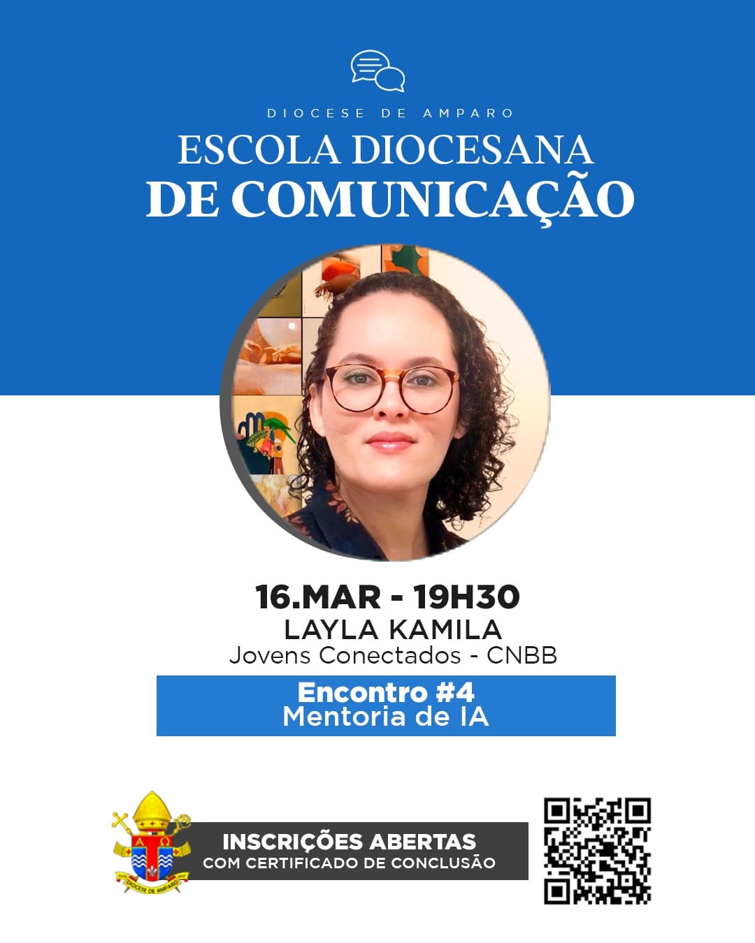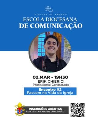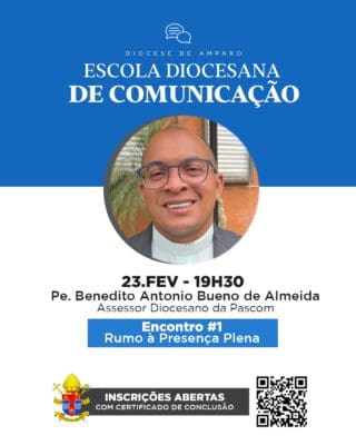 As inscrições estão abertas e devem ser realizadas por meio do link: forms.gle/W7Pxj986dPzuXqqx9, com emissão de certificado de conclusão aos participantes. A Escola Diocesana de Comunicação reafirma o compromisso da Diocese de Amparo com a formação contínua e com uma comunicação cada vez mais evangelizadora, ética e comprometida com a missão da Igreja.