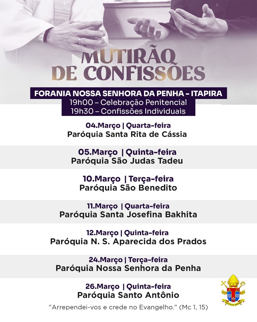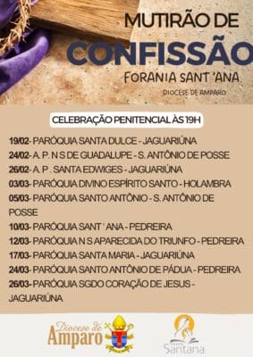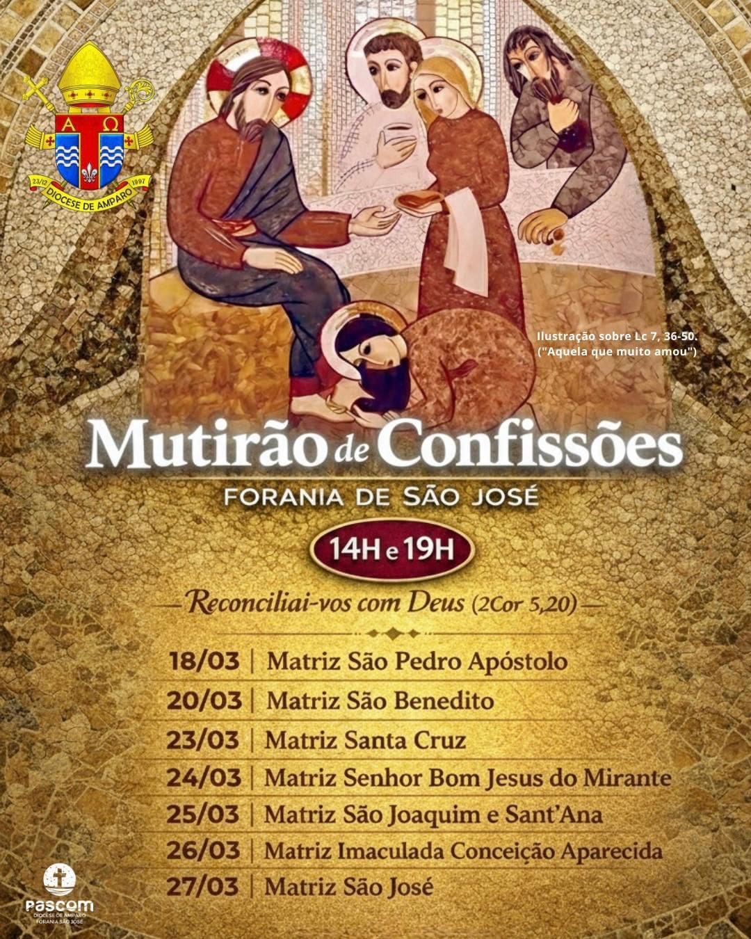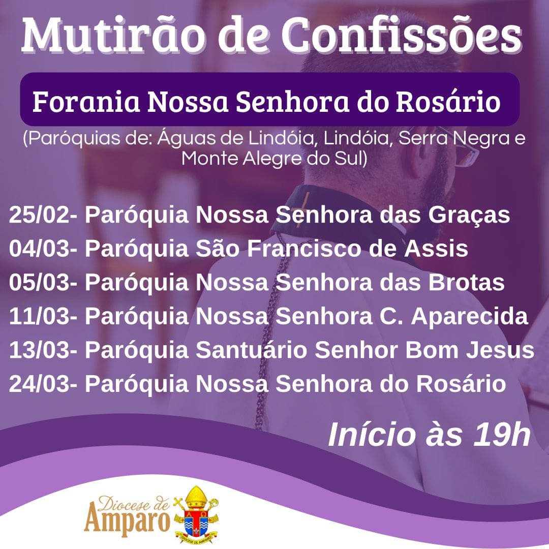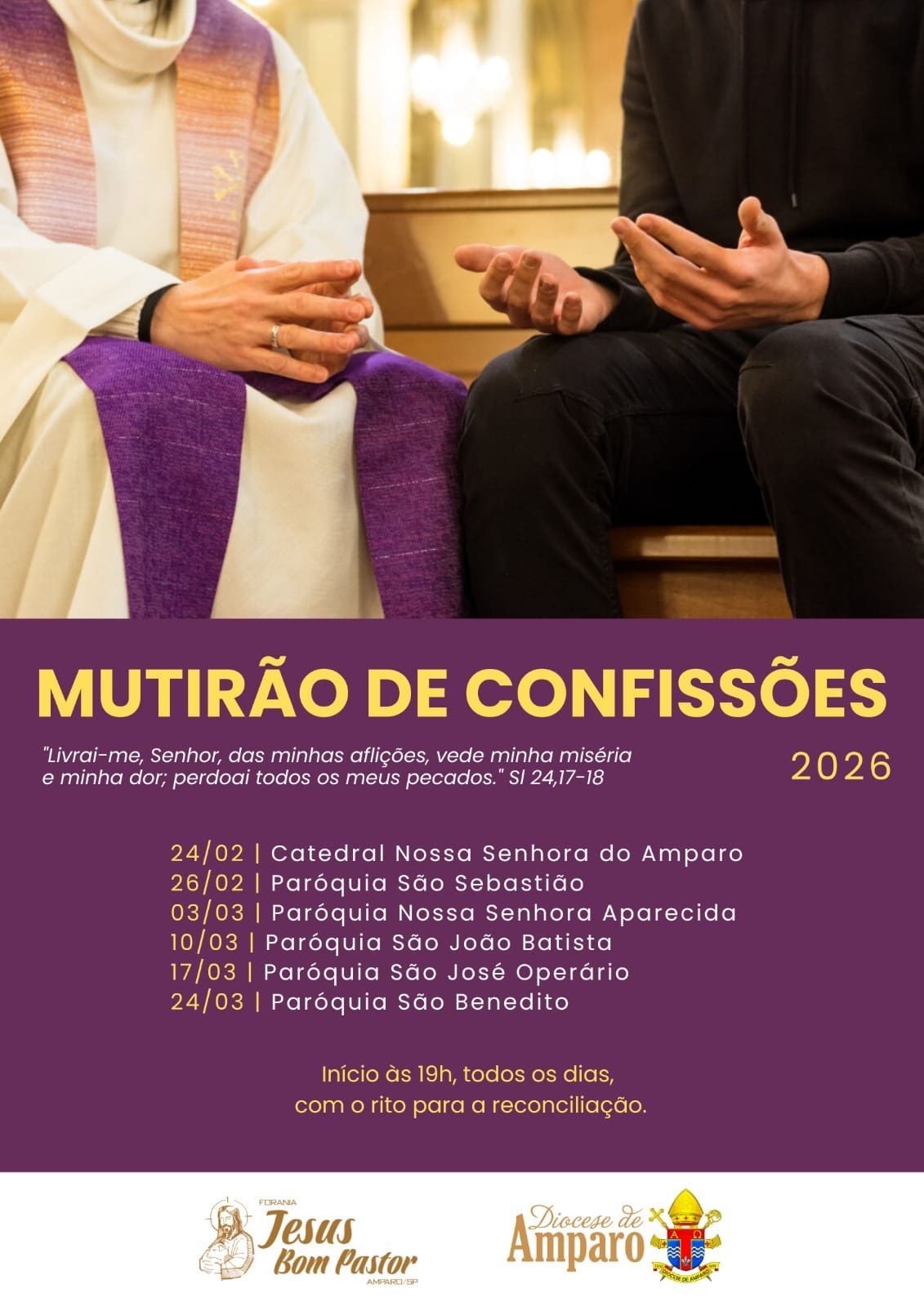 A Diocese de Amparo realizará, nas cinco foranias que compõem seu território pastoral, o tradicional Mutirão de Confissões, iniciativa que integra a vivência do Tempo da Quaresma e prepara os fiéis para a celebração da Páscoa.