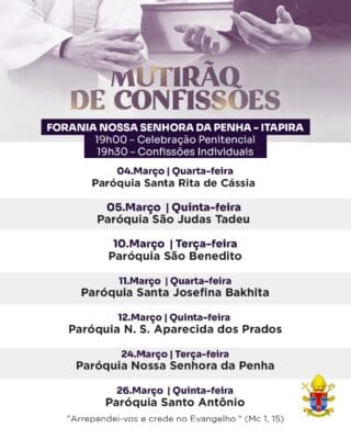 A ação tem como objetivo ampliar os horários e as oportunidades para o atendimento de confissões nas paróquias, favorecendo a participação do maior número possível de fiéis no Sacramento da Reconciliação. As celebrações penitenciais e os atendimentos individuais serão organizados conforme a programação estabelecida em cada forania.