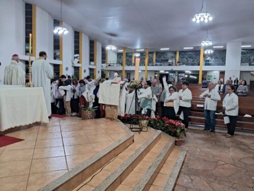 Na noite da última sexta-feira, 6 de junho, a Paróquia Divino Espírito Santo, localizada na cidade de Holambra (SP), acolheu com grande alegria a presença do bispo diocesano, Dom Luiz Gonzaga Fechio, para a Missa de investidura dos novos Ministros Extraordinários da Distribuição da Sagrada Comunhão.