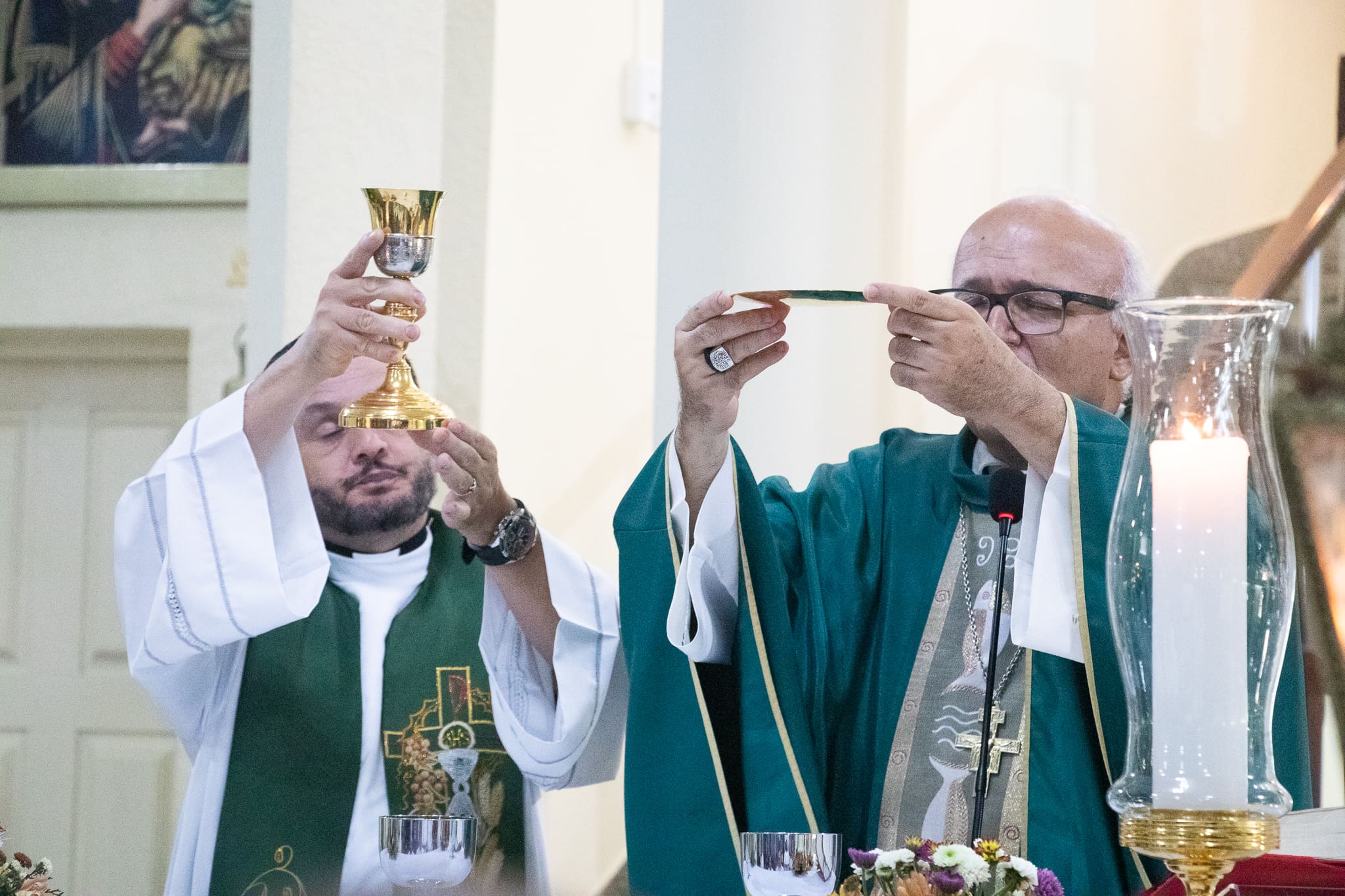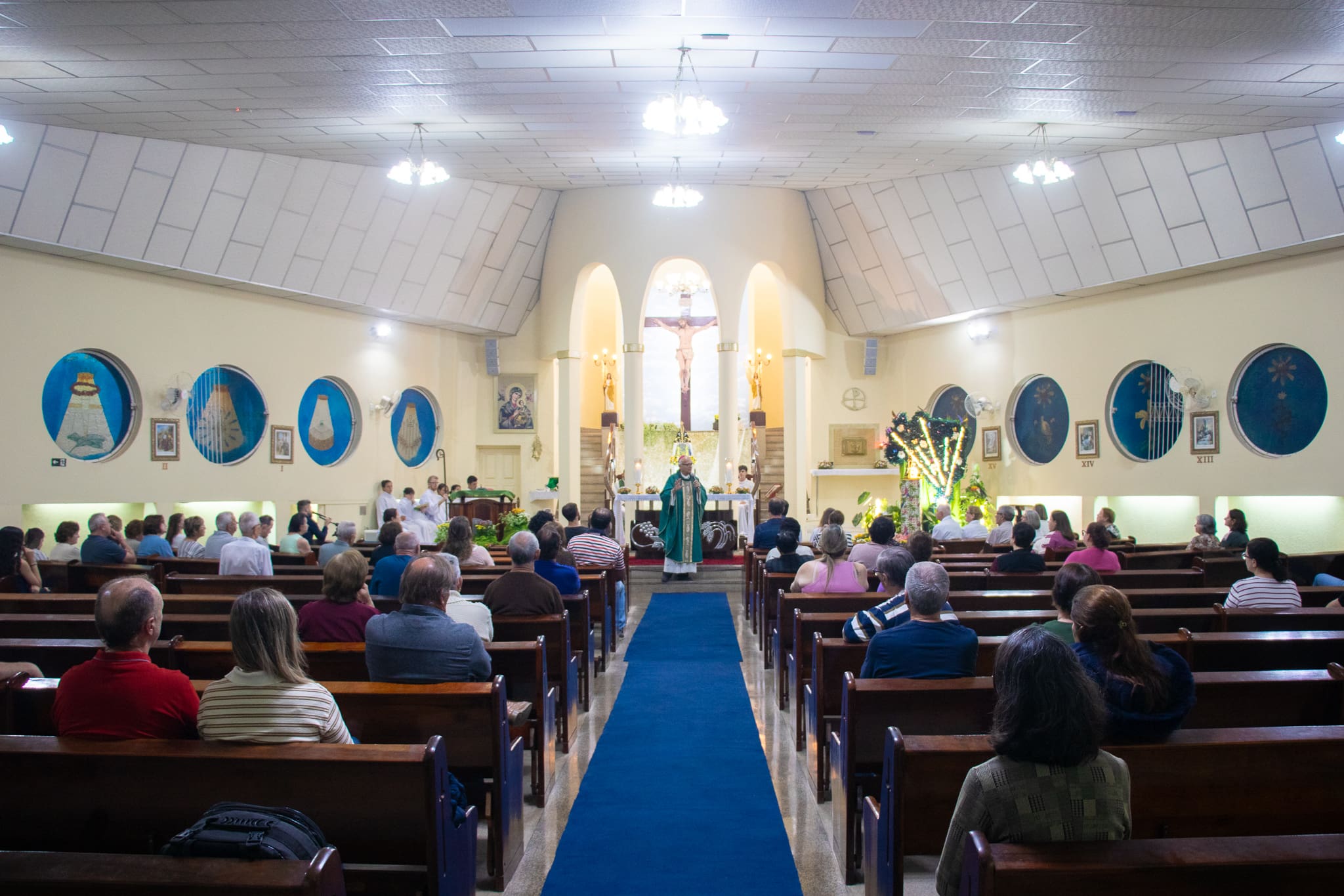 A Santa Missa foi presidida por Dom Luiz Gonzaga Fechio, Bispo Diocesano, e concelebrada pelo pároco local, Padre Alexandre Donizeti Francisco. A celebração reuniu numerosos fiéis em um profundo momento de oração e amor à Mãe Aparecida.