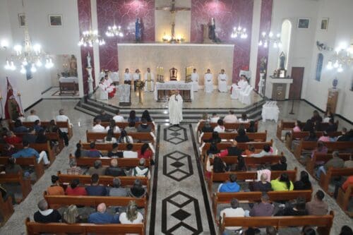 No último domingo, 15 de junho, a Paróquia Santa Rita de Cássia, em Itapira, acolheu com alegria a Santa Missa com o Sacramento da Crisma, presidida por Dom Luiz Gonzaga Fechio e concelebrada pelo pároco local, Padre Francis Tadeu de Oliveira Mistrelli.