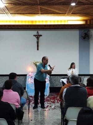 As pregações da noite foram conduzidas por Pepe, Claudinha e Clara, que proporcionaram aos participantes uma profunda vivência de espiritualidade, partilha e esperança, tendo Maria, Mãe de Jesus, como modelo de fé e amor.