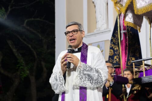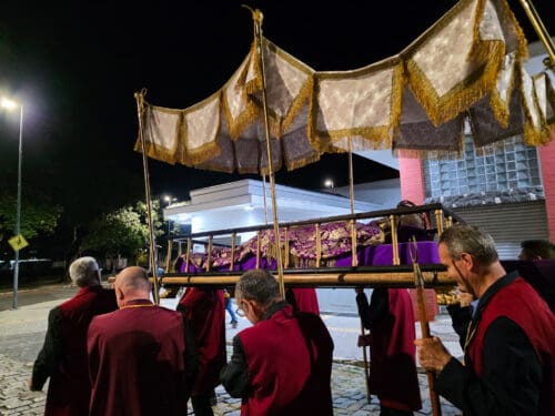A procissão contou com a presença da imagem do Senhor Morto e de Nossa Senhora das Dores, reunindo a comunidade em um gesto público de fé, recordando o sofrimento e a morte de Cristo. O momento também contou com a presença do bispo diocesano, Dom Luiz Gonzaga Fechio.