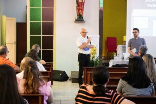 Durante sua assessoria, padre José Carlos abordou o tema do expediente paroquial, destacando a importância do ambiente da secretaria, da organização do espaço, do papel do secretário e das atitudes que devem acompanhar o exercício desta missão. Segundo ele, o atendimento paroquial não se restringe apenas a tarefas administrativas, mas integra a vida e a missão evangelizadora da Igreja.