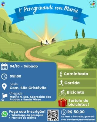 Outro momento aguardado será o 1º Peregrinando com Maria, no dia 4 de outubro, com saída às 5h da Comunidade São Cristóvão. Os fiéis poderão participar em caminhada, corrida ou de bicicleta, em um percurso que terá como destino a Matriz de Nossa Senhora Aparecida dos Prados, onde será celebrada a Santa Missa. A inscrição custa R$ 50,00 e garante camiseta personalizada, além de participação em sorteio de bicicletas.