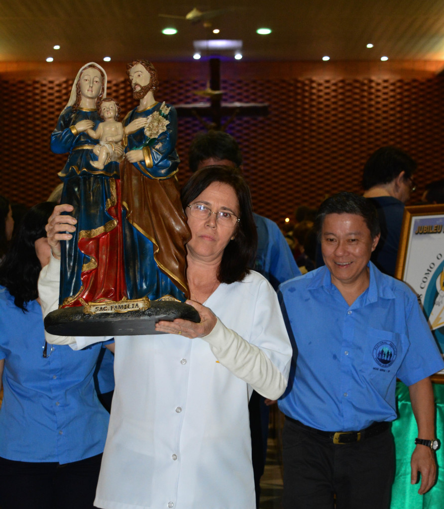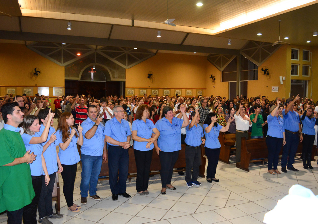 Ao final da celebração, um representante de cada paróquia entrou com uma letra para compor a palavra FAMÍLIA. O momento representou bem o que se via na igreja – uma grande família unida ao redor da mesa eucarística.