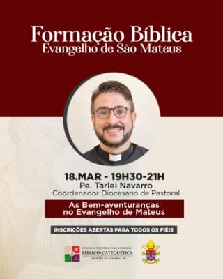 A Comissão Pastoral para Animação Bíblico-Catequética da Diocese de Amparo convida todos os fiéis para participarem da Formação Bíblica sobre o Evangelho de São Mateus, que será realizada de forma online, possibilitando a participação dos fiéis de toda a Diocese.