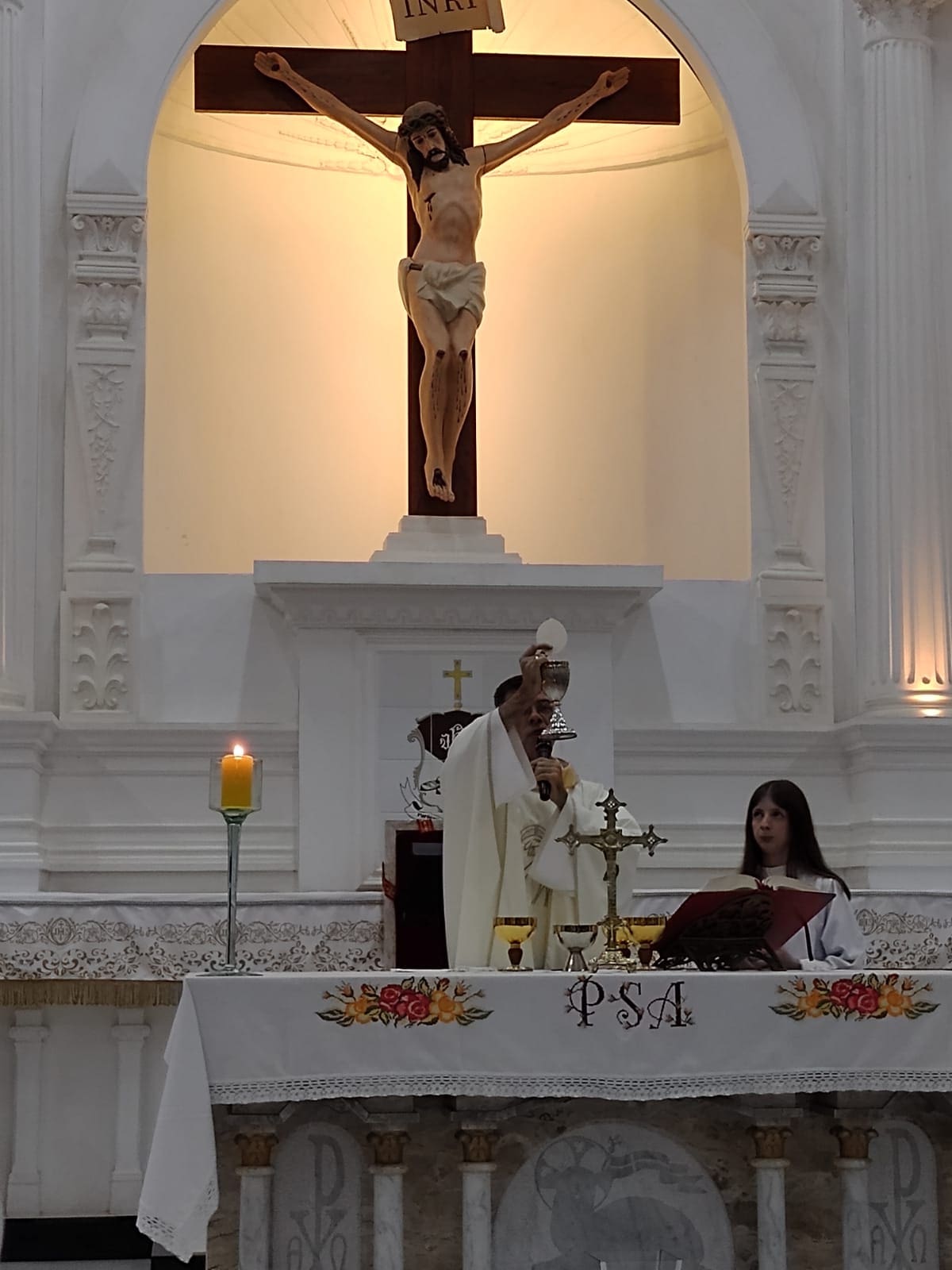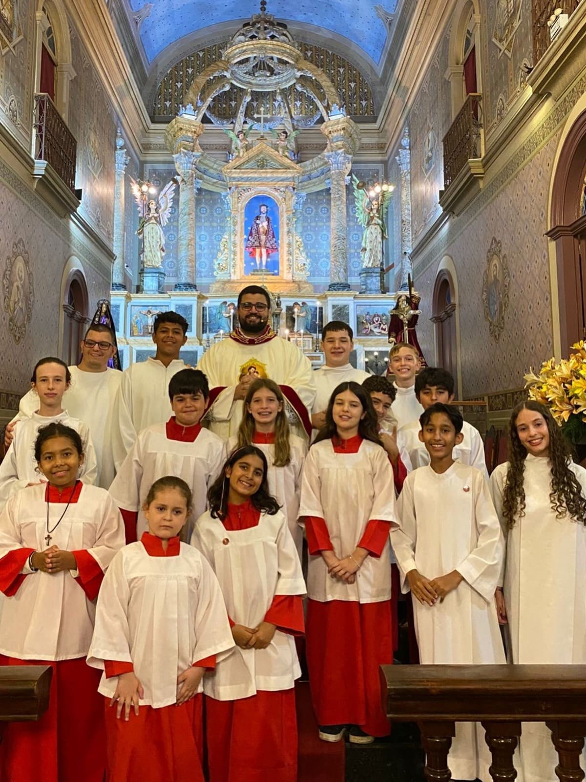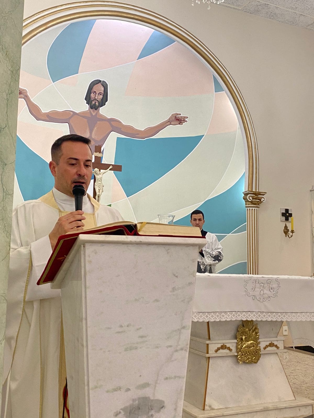 Na Paróquia Nossa Senhora das Brotas, em Lindóia, a celebração foi conduzida pelo pároco, Pe. Erique Fernando Bordini, com a presença do seminarista Alan.