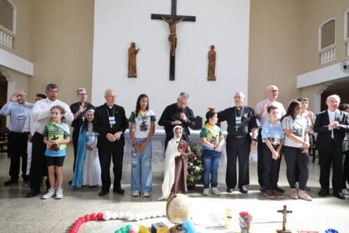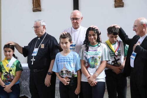 Dezenas de crianças e adolescentes, “chamados a ser missionários do amor de Deus”, conduziram um momento de oração marcado pela espiritualidade da IAM. A iniciativa foi encerrada por meio de uma prece entre os bispos e as crianças.