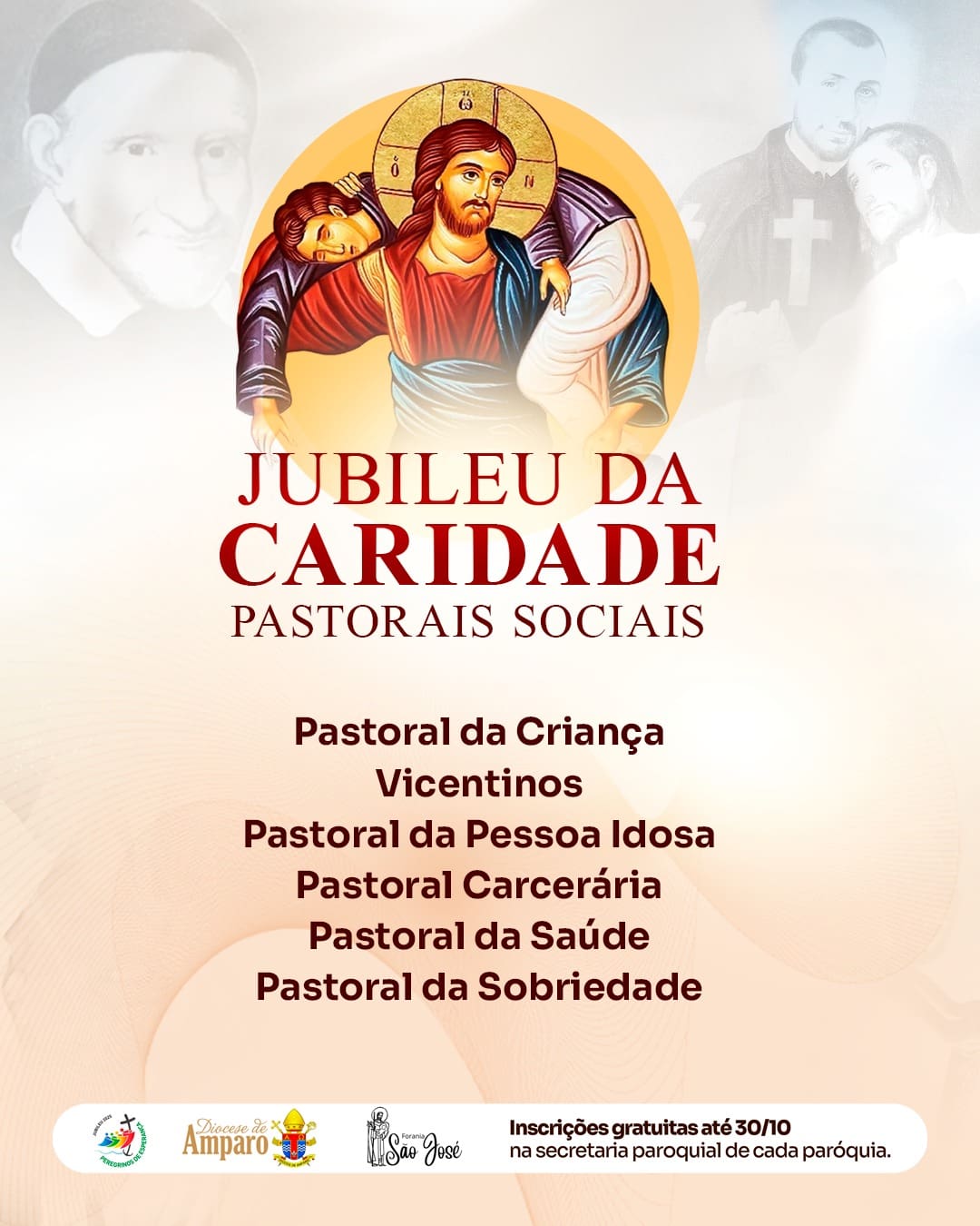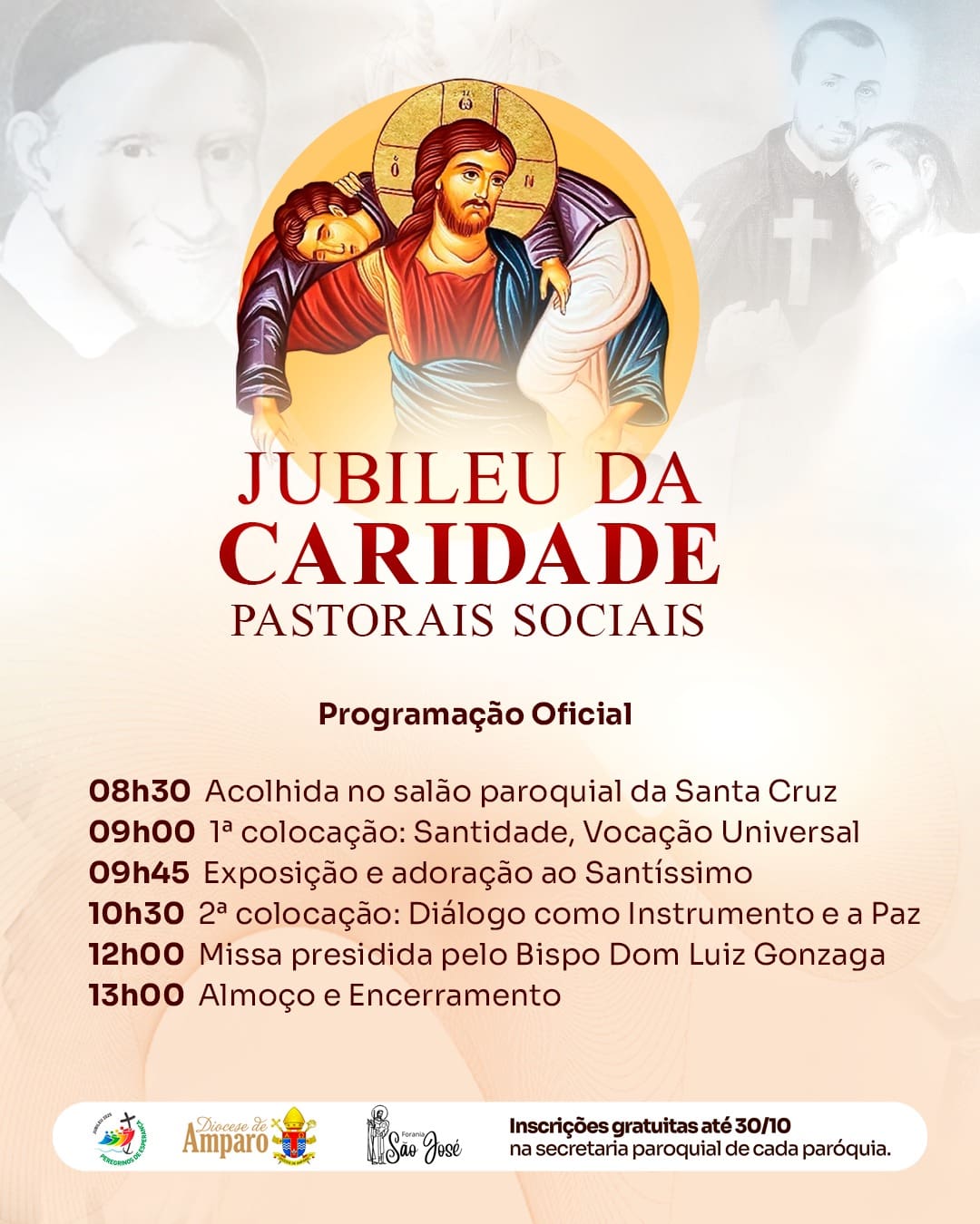 Dentro das celebrações do Ano Jubilar “Peregrinos de Esperança”, a Diocese de Amparo realizará no próximo 16 de novembro de 2025 o Jubileu da Caridade das Pastorais Sociais.