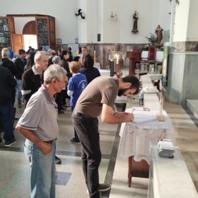 O dia teve início na Matriz Nossa Senhora da Penha com a Santa Missa às 7h30, presidida pelo Pe. Edson Friedrichsen, CM — custodió-portador das relíquias — e concelebrada pelos párocos da forania. A celebração marcou solenemente a chegada das relíquias do santo da caridade, dando início à veneração pública que se estendeu até o meio-dia. Às 12h, os fiéis se reuniram para a oração do Santo Terço, momento marcado por profunda espiritualidade e participação das Conferências Vicentinas locais.