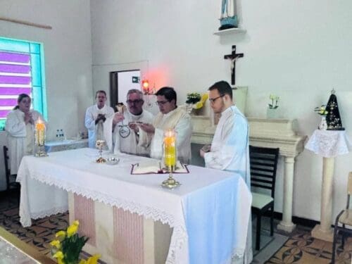 Às 14h, as relíquias foram levadas à Capela São Vicente, no Lar São Vicente de Paulo, onde foi celebrada a Santa Missa com os residentes e colaboradores da instituição. Foi um momento de grande emoção, expressando a proximidade do carisma vicentino com os pobres, os idosos e os mais necessitados.