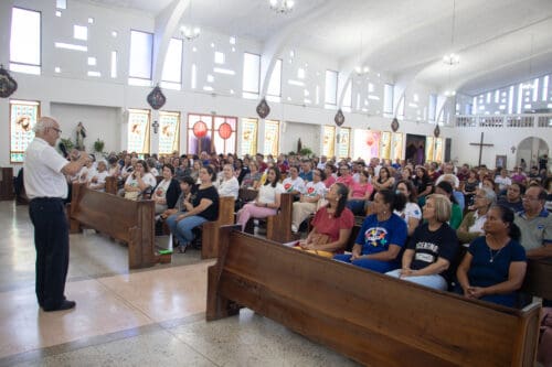 O evento teve início com a acolhida e o café da manhã no salão paroquial da Igreja Matriz Santa Cruz. Em seguida, a primeira colocação foi conduzida pelo Padre Paulo Henrique Dias, pároco da Paróquia Santa Cruz, com o tema “Santidade como Vocação Universal”.