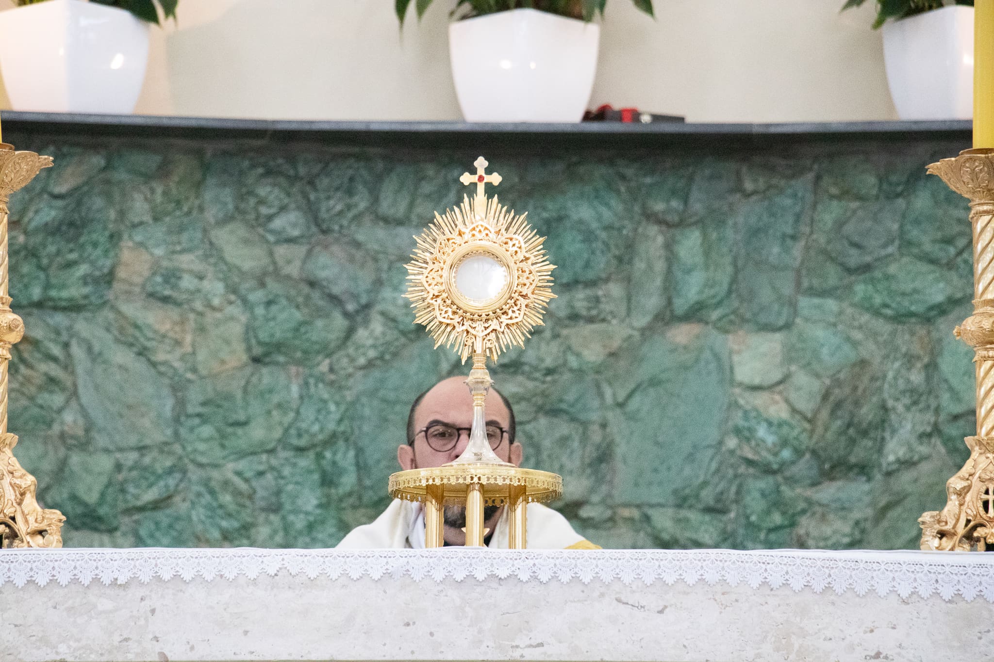 Logo após, houve a exposição e adoração ao Santíssimo Sacramento, conduzida pelo Padre Flávio Ferreira da Silva, da Paróquia São Joaquim e Sant’Ana. Neste momento, o Diácono Luiz Aparecido da Silva, da Paróquia São José de Mogi Mirim, auxiliou os ritos de adoração juntamente com o seminarista Luis Fernando, colaborando com grande zelo litúrgico.