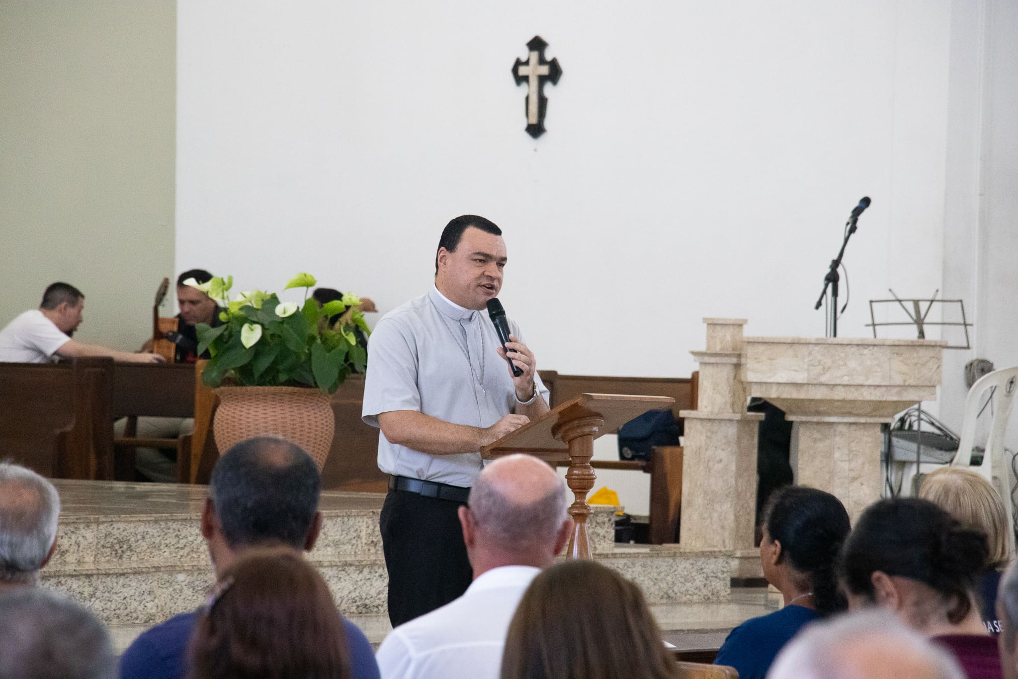 O evento teve início com a acolhida e o café da manhã no salão paroquial da Igreja Matriz Santa Cruz. Em seguida, a primeira colocação foi conduzida pelo Padre Paulo Henrique Dias, pároco da Paróquia Santa Cruz, com o tema “Santidade como Vocação Universal”.