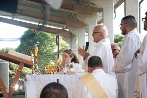 As crianças, em um momento de profunda espiritualidade, rezaram o Terço da Divina Misericórdia, preparando seus corações para o ponto alto do encontro: a celebração da Santa Missa. A Missa de encerramento foi presidida por nosso bispo diocesano, Dom Luiz Gonzaga Fechio, que, em sua homilia, exortou todos a permanecerem firmes na fé e na esperança em Cristo Ressuscitado.