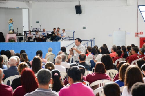 A programação teve início logo pela manhã, com acolhida, oração e a primeira palestra do dia, conduzida pelo Padre Juliano Aparecido de Oliveira Amaral, vigário paroquial da Paróquia Santa Maria, de Jaguariúna, que foi o responsável pela palestra das 9h. O sacerdote refletiu sobre o tema “A Vocação Universal à Santidade”, apresentando a santidade como chamado para todos os batizados. Inspirado na Constituição Dogmática Lumen Gentium, do Concílio Vaticano II, ele destacou que a santidade permeia toda a vida da Igreja e de cada fiel. Em sua fala, Padre Juliano recordou a santidade ao longo da história da salvação e da Igreja.