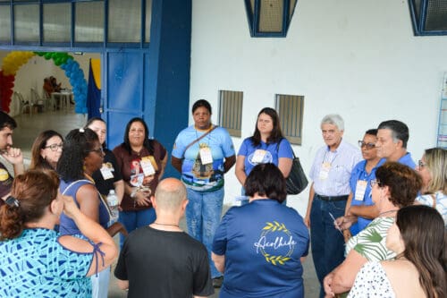 Após este momento cultural, os participantes se reuniram em grupos de aproximadamente 15 pessoas para um instante de partilha. Cada grupo recebeu a pergunta: “Quais sinais de esperança você tem visto em sua paróquia, pastoral, ministério e na Diocese?”. A partilha foi muito rica, permitindo que cada um expressasse sua vivência, e ao final as reflexões foram socializadas com todos os presentes, fortalecendo ainda mais o espírito comunitário.
