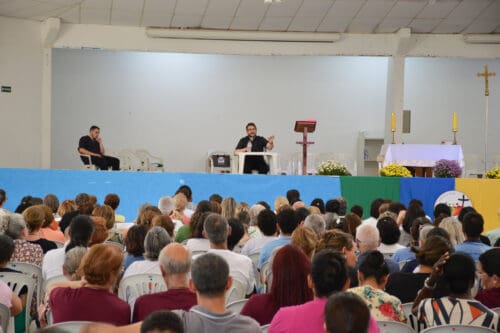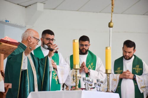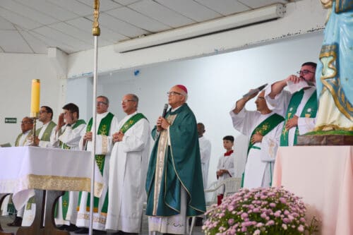 “Queridos irmãos e irmãs, acabei de refletir sobre a Igreja para a Evangelização. No chamado da Lumen Gentium do Concílio Vaticano II, esse documento tão precioso sobre a Igreja, penso que é o momento de nos reunirmos como Igreja em prol da Evangelização. Nós tivemos tantas dificuldades no período da pandemia. Precisamos dar um novo vigor, retornar com fervor com a ação do Espírito Santo, os trabalhos de serviço. Onde nós estamos, de fato, engajados nas nossas pastorais. E assim anunciar a Boa Nova da Salvação. Levar Jesus, sendo instrumento Dele, imitadores de Cristo, para que muitos o conheçam e o amem. Vamos lá revigorar nossas comunidades para o novo ar missionário. Deus nos abençoe nessa missão tão bonita de ser Igreja, a Igreja do Senhor.”