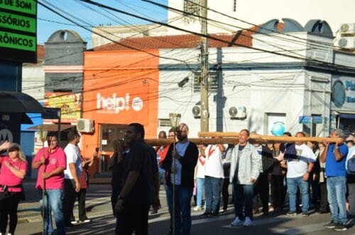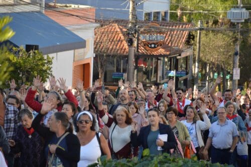 Na sequência, os participantes realizaram a Caminhada da Esperança, percorrendo as ruas da cidade até a Igreja Matriz Santa Maria, onde o Diácono Juliano Amaral conduziu uma palestra sobre “A Santidade, Vocação Universal”. Em seguida, houve a segunda palestra, ministrada pelo Padre Luciano Silva, com o tema “Povo de Deus”.