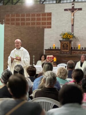 A celebração teve início com a oração do Santo Terço, conduzido no Centro Comunitário da comunidade, seguida da Santa Missa, presidida pelo pároco Padre Anderson Frezzato. Foi um momento de profunda comunhão, oração e renovação da esperança cristã.