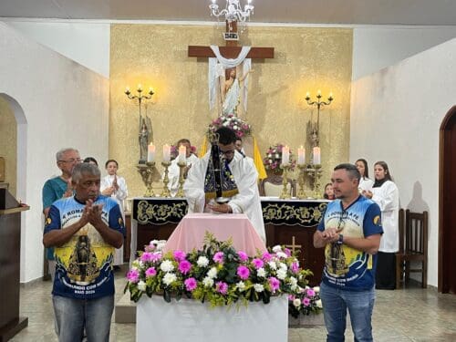 A Santa Missa foi presidida pelo padre Reginaldo Grilo, da Paróquia Nossa Senhora das Brotas, de Lindóia, e concelebrada pelo pároco local, padre Fabrício Ferreira, com a presença do diácono permanente Reginaldo Lima.