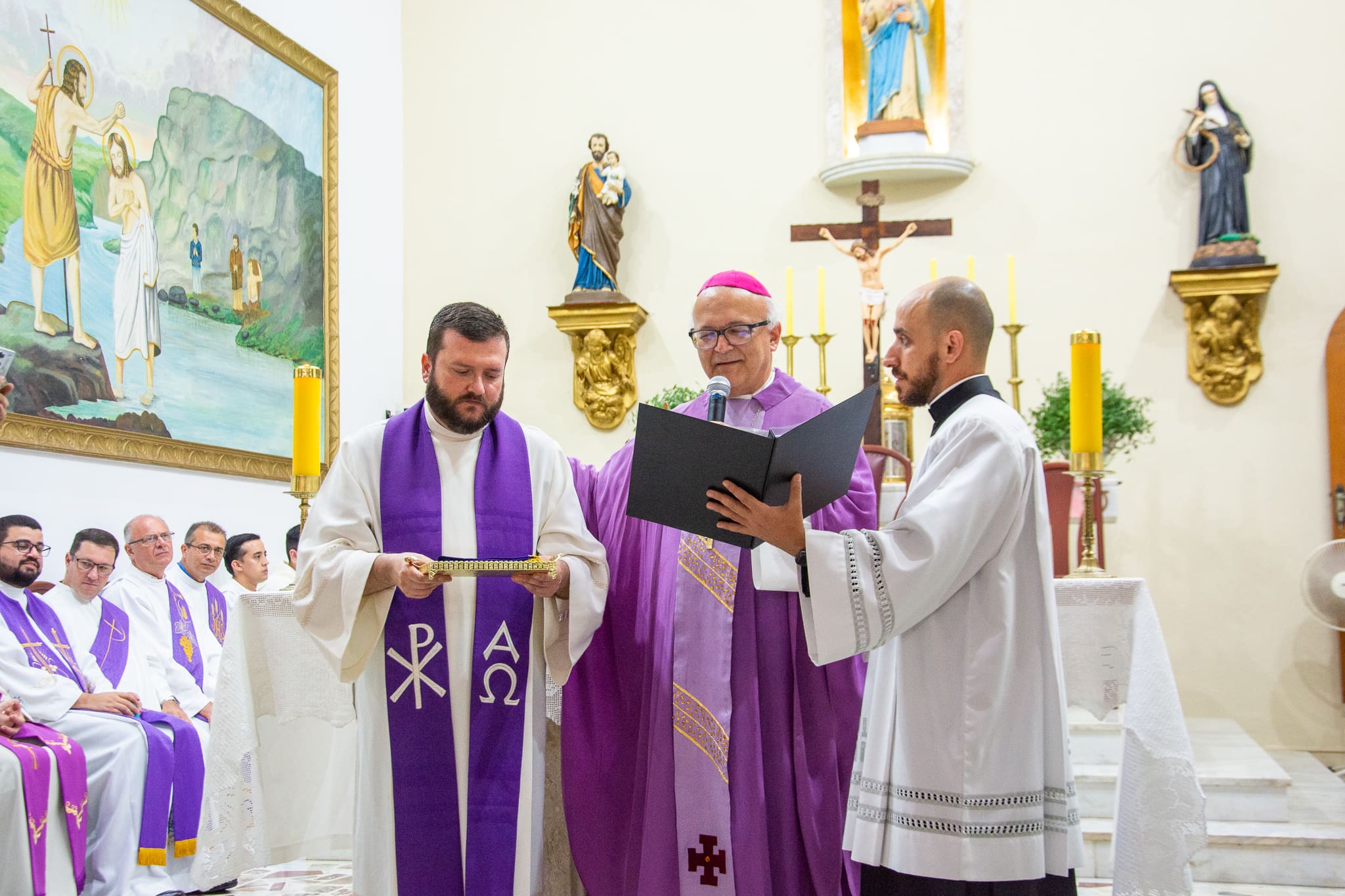 A celebração reuniu vários sacerdotes, diáconos e seminaristas da Diocese, que se fizeram presentes para manifestar comunhão e apoio ao novo pároco. Entre eles: