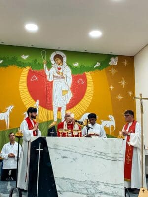 A Santa Missa foi presidida por Dom Luiz Gonzaga Fechio, bispo diocesano, e contou com a concelebração do Padre Frei Flávio Antônio Gandelini, pároco local, e do Padre André Ricardo Panassolo, pároco da Paróquia São Benedito – Itapira.