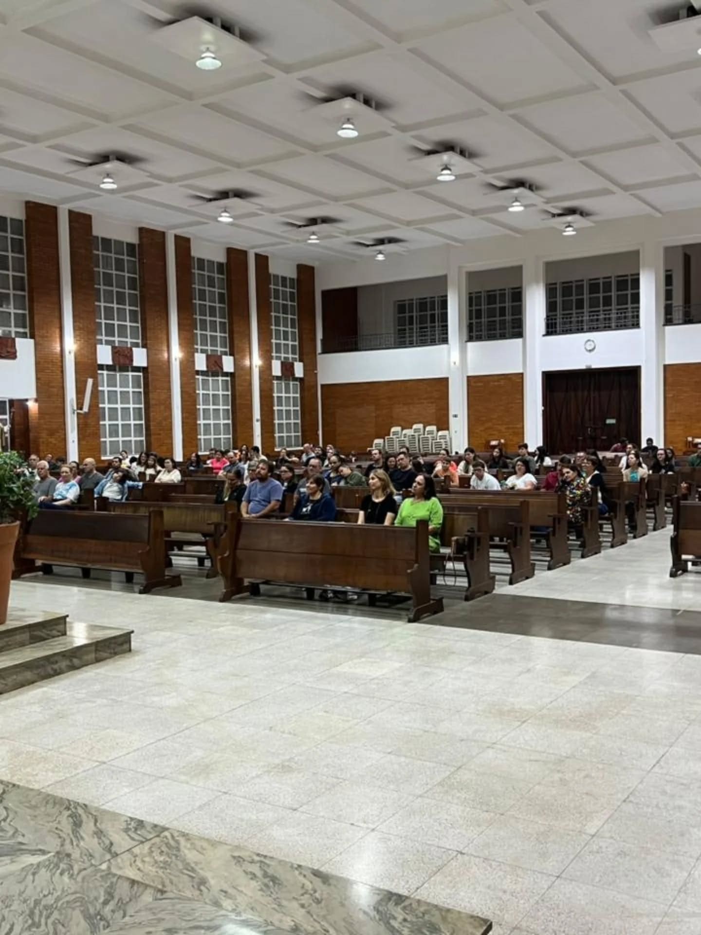Após a celebração, o diácono Nivaldo Bonomelli ministrou uma palestra com o tema “Cuidar de si, do próximo e da Casa Comum”, refletindo sobre a importância do cuidado integral com a vida humana e com a criação, à luz do Evangelho e da Doutrina Social da Igreja.