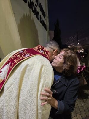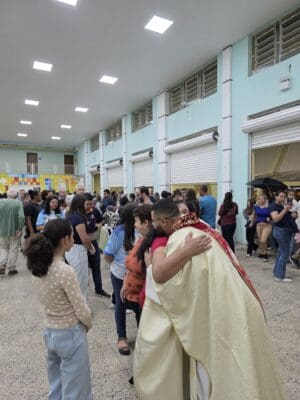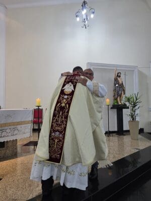 Ao final da celebração, foram apresentadas todas as pastorais, movimentos e serviços paroquiais. Cada grupo foi acolhido com um abraço fraterno pelo novo pároco, gesto que expressa seu desejo de caminhar junto ao povo.