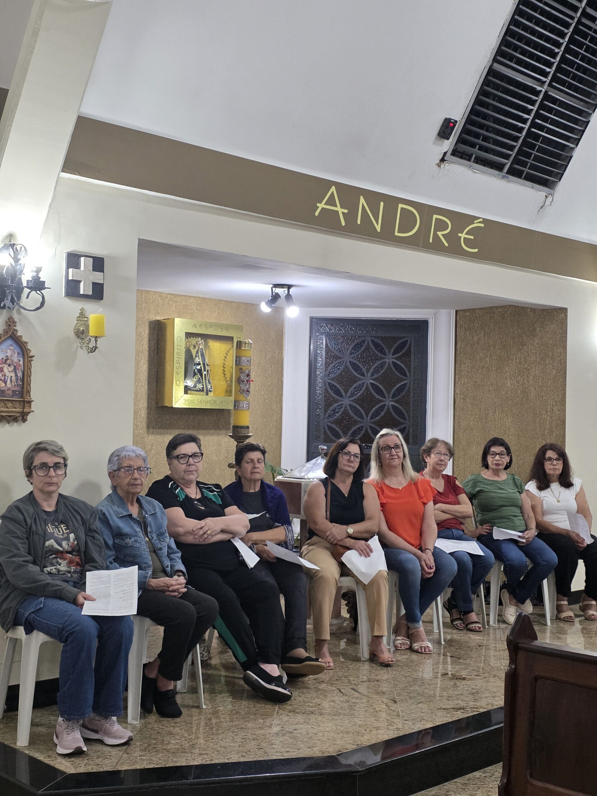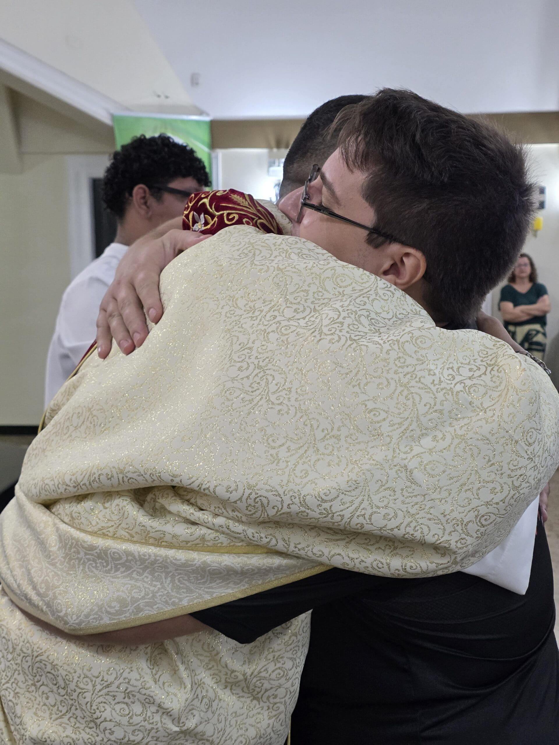 Ao final da celebração, foram apresentadas todas as pastorais, movimentos e serviços paroquiais. Cada grupo foi acolhido com um abraço fraterno pelo novo pároco, gesto que expressa seu desejo de caminhar junto ao povo.